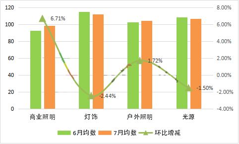 燈飾系列7月均數為112.32點,較6月下跌2.44%;