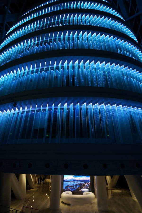 鳳凰國際傳媒中心建筑結構特殊,充滿創意,是用一個具有生態功能的外殼將具有獨立維護使用的空間包裹在里面,體現了樓中樓的概念。兩者之間有許多共享公共空間,公共空間有臺階、景觀平臺、空中環廊和自動扶梯,使得整個建筑充滿動感和活力。