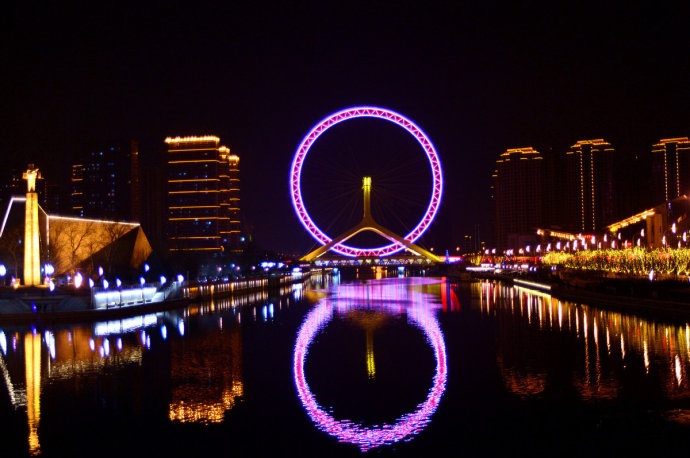 永樂橋與天津之眼:位于海河的起始點(diǎn)--三岔河口。天津之眼(The Tientsin Eye),全稱天津永樂橋摩天輪(The Yongle Bridge Tientsin Eye),坐落在天津市紅橋區(qū)海河畔,是一座跨河建設(shè)、橋輪合一的摩天輪,兼具觀光和交通功用。是世界上唯一建在橋上的摩天輪,是天津的地標(biāo)之一。